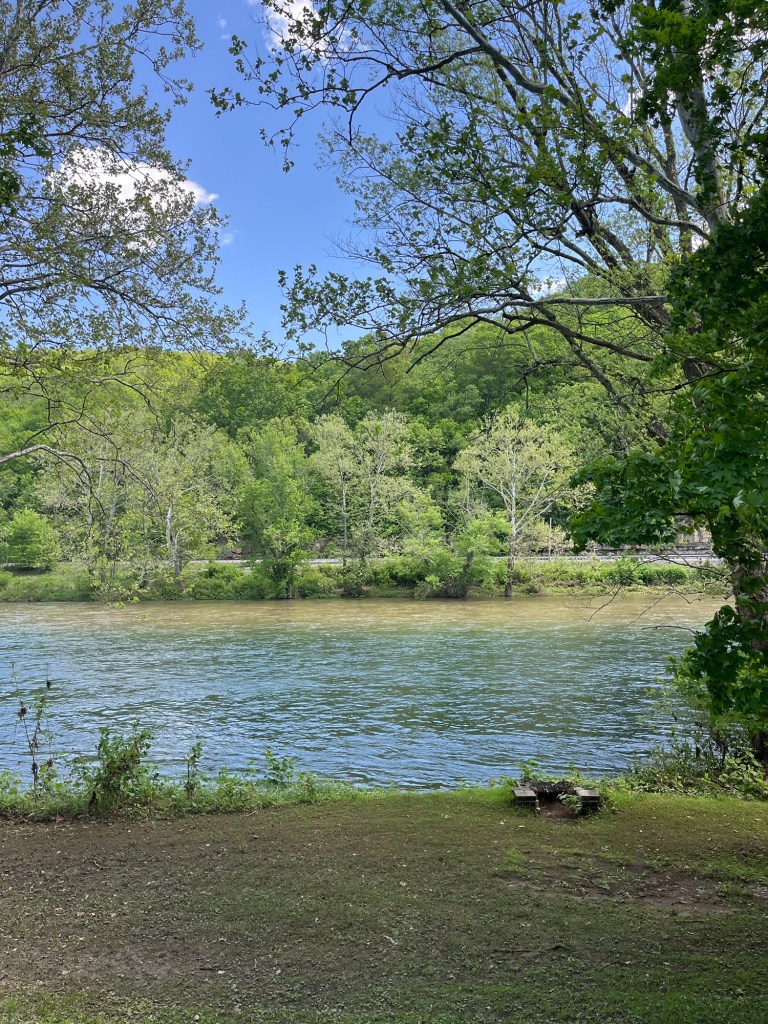 We’re hiking along the Great Allegheny Passage near Confluence, PA. Here’s a picture of the two rivers that come together here. The Casselman and Youghiogheny. Here’s a picture.