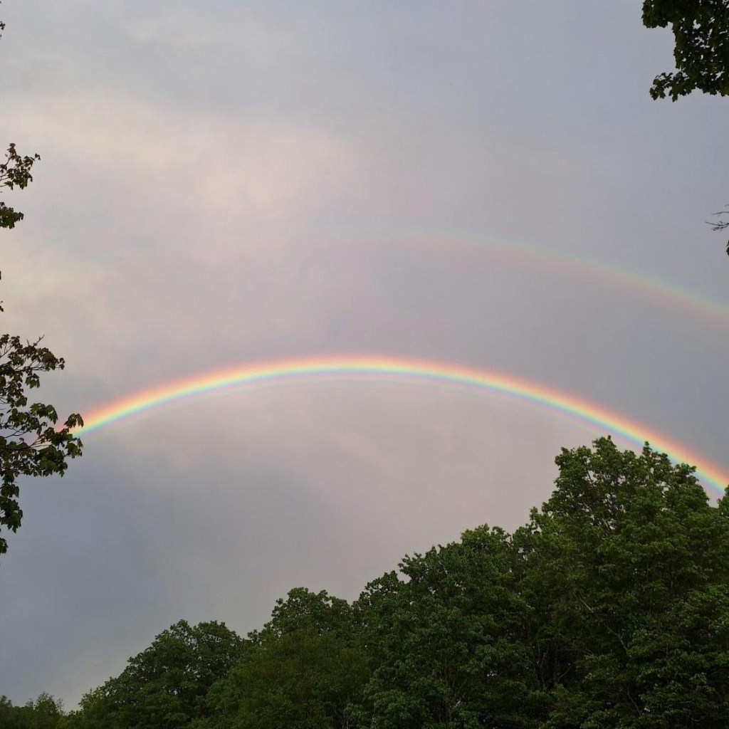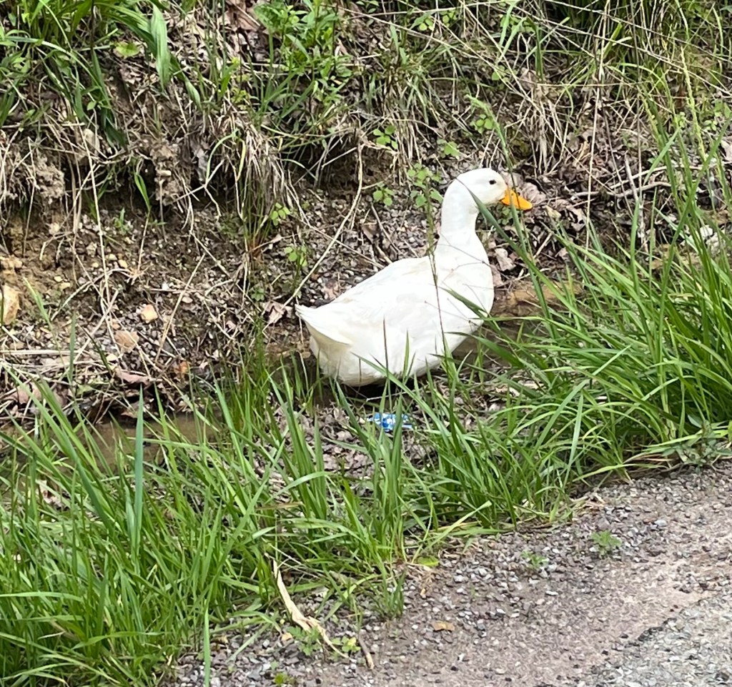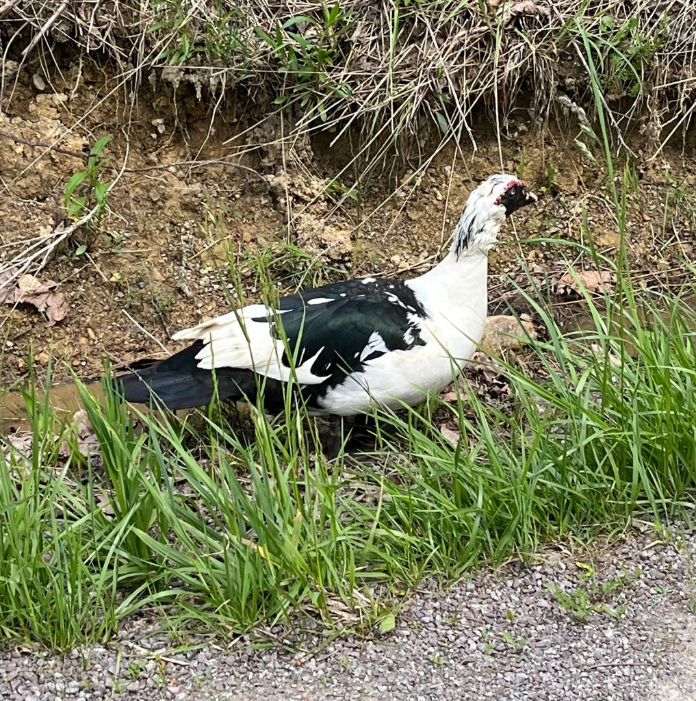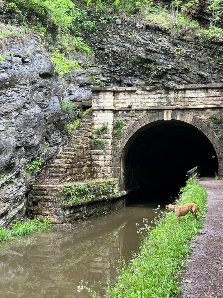 Fire without Sharon to help.On our walk today No words. I have never seen such a beautiful rainbow. Yup. I was sick. Jack’s new best friend. A weird looking duck….….and his partner. One end of the Paw Paw Tunnel. Very cool. We walked through to the other end.